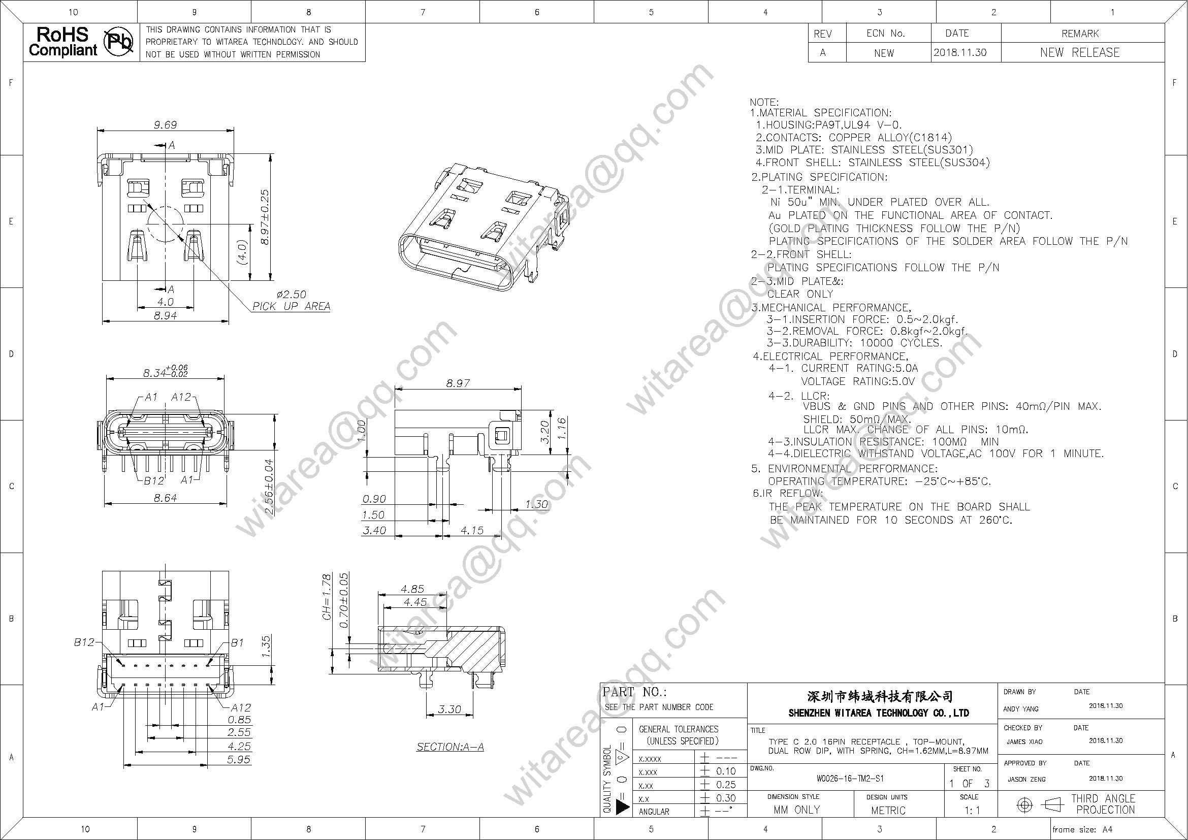 | Product Family: | USB TYPE C Connector |