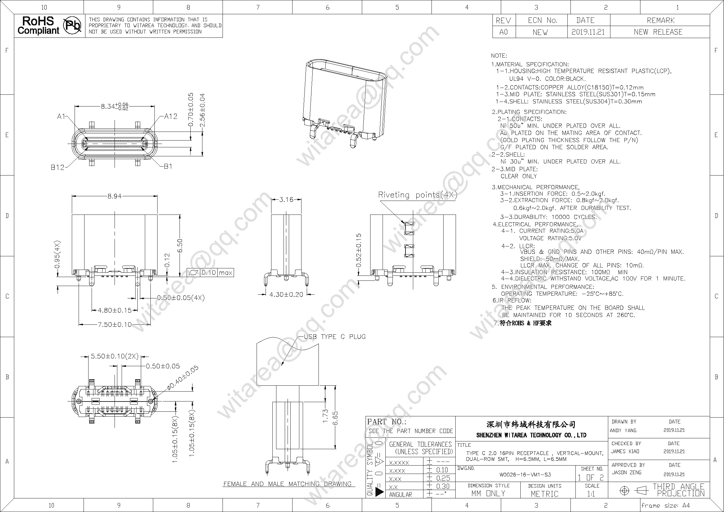 | Product Family: | USB TYPE C Connector |
