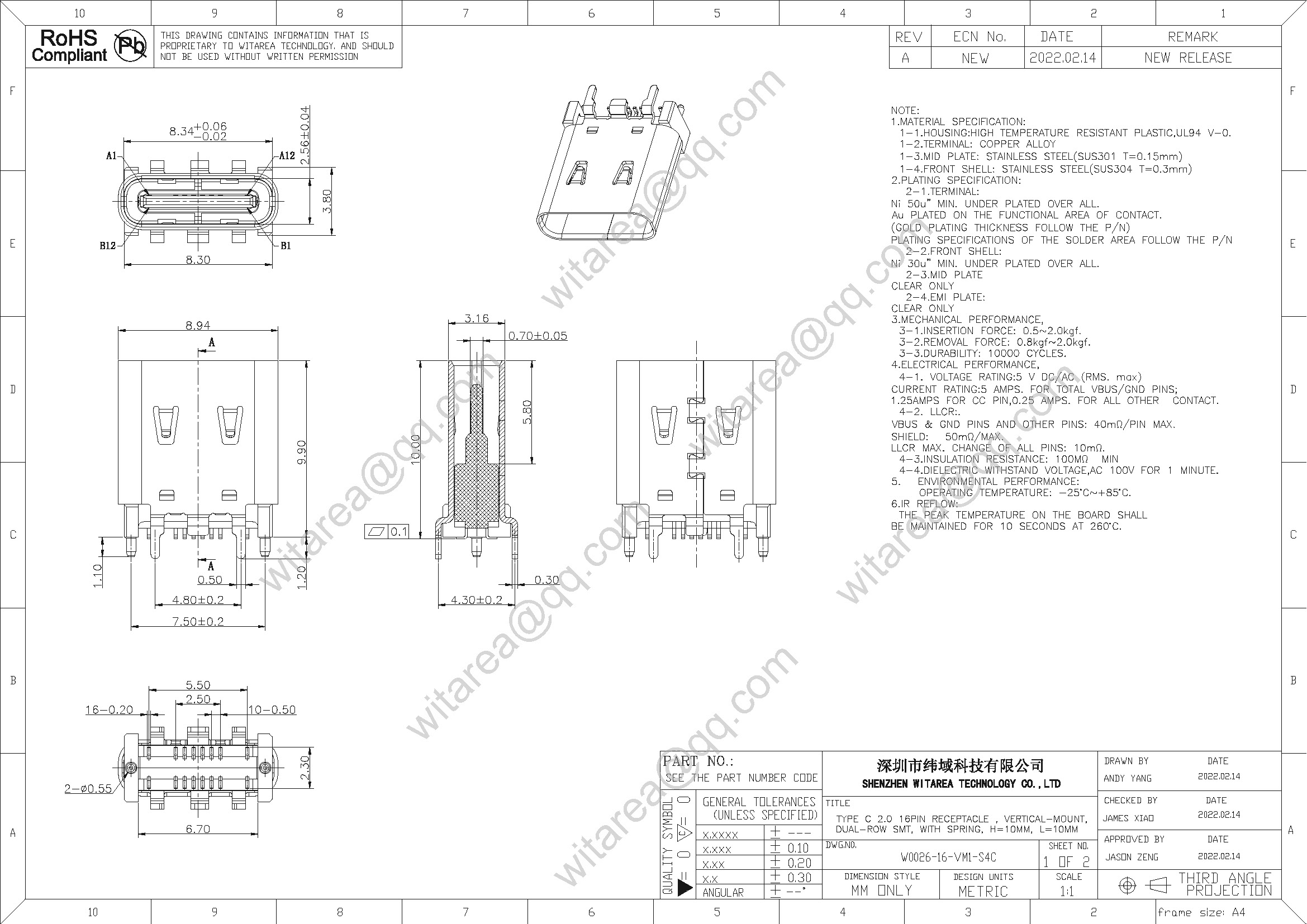 | Product Family: | USB TYPE C Connector |