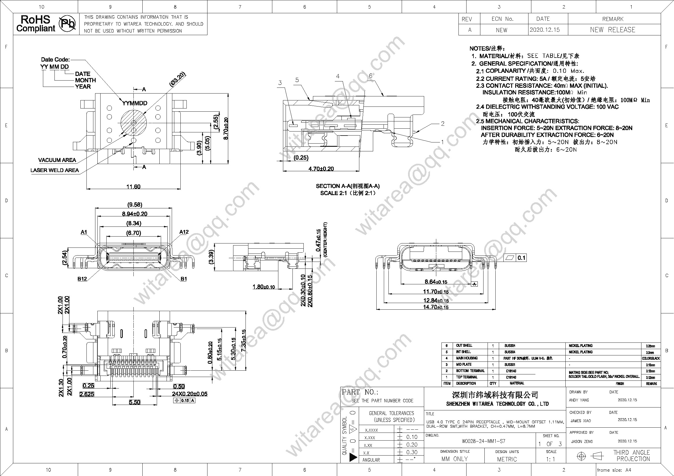| Products: | USB 4.0 TYPE C 24PIN RECEPTACLE , MID-MOUNT OFFSET 1.11MM, DUAL-ROW SMT,WITH BRACKET, CH=0.47MM, L=8.7MM |