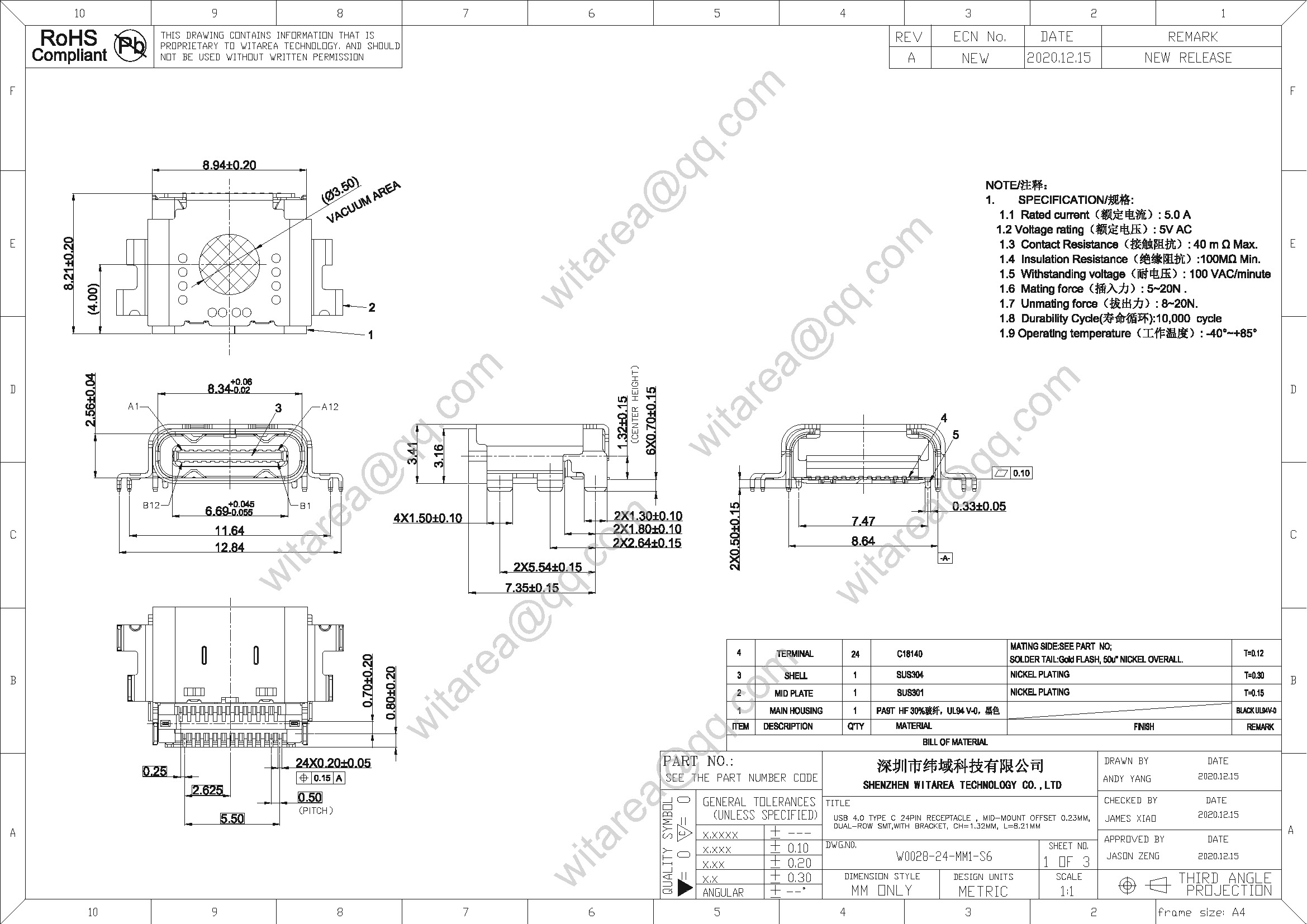 | Products: | W0028-24-MM1-S6 USB 4.0 TYPE C 24PIN RECEPTACLE , MID-MOUNT OFFSET 0.23MM, DUAL-ROW SMT,WITH BRACKET, CH=1.32MM, L=8.21MM |