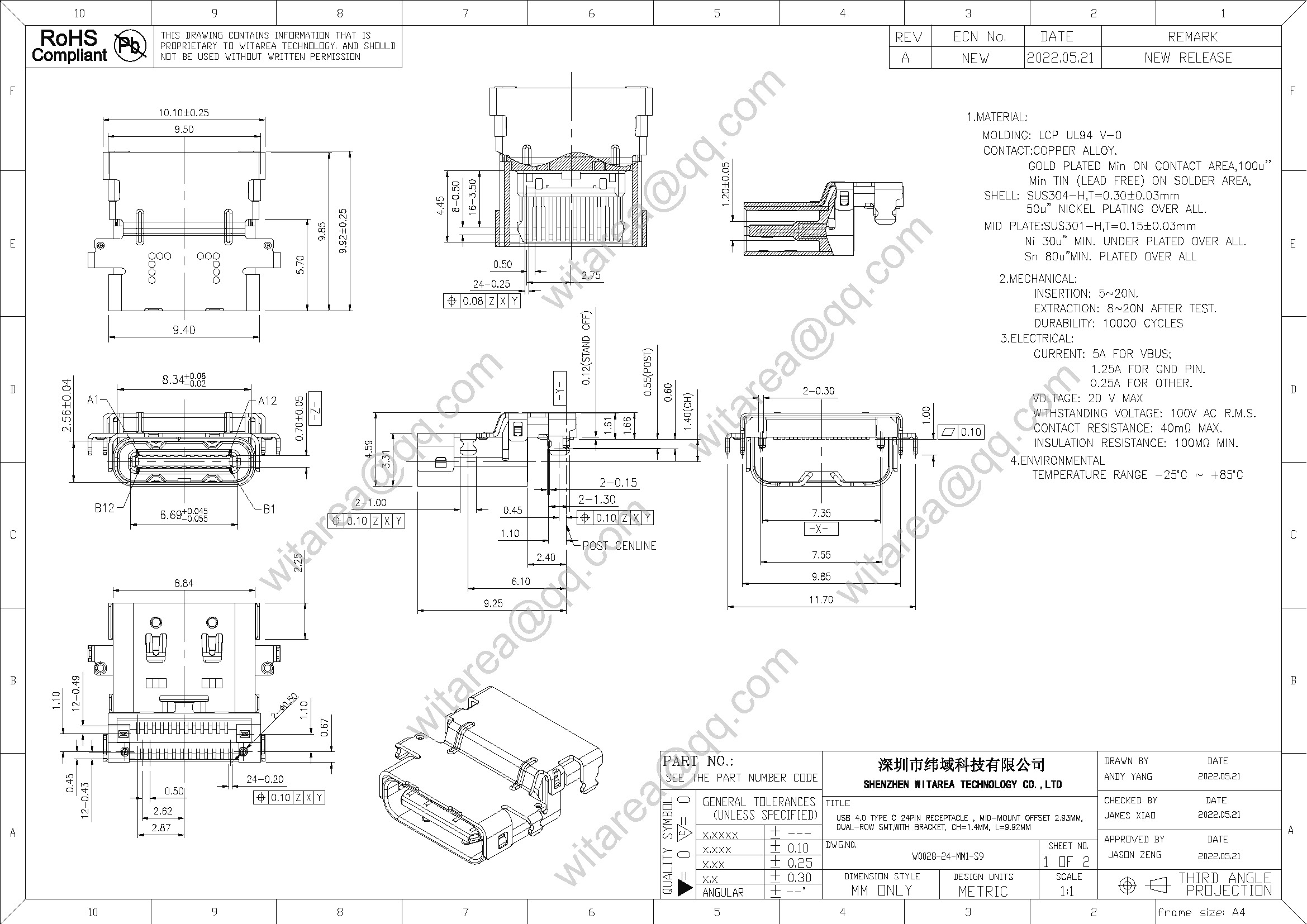 | Products: | EN W0028-24-MM1-S9 USB 4.0 TYPE C 24PIN RECEPTACLE , MID-MOUNT OFFSET 2.93MM, DUAL-ROW SMT,WITH BRACKET, CH=1.4MM, L=9.92MM |